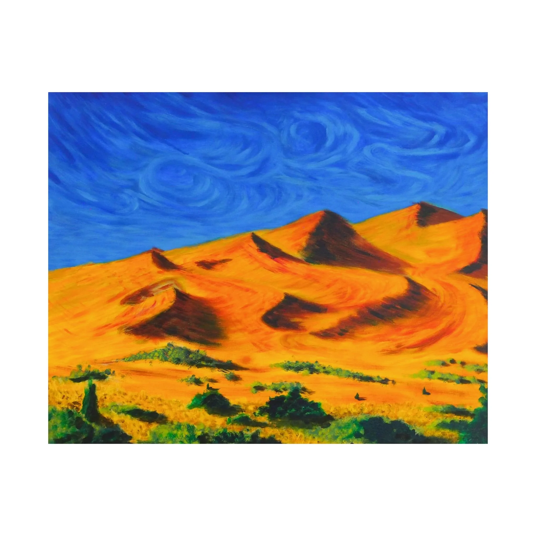 A view of a view of a view, from a touching moment, to a decent photo, to a sketch, and a painting, the Great Sand Dunes come through strong every time. Let this moment of austere wonder live on your wall and in your heart.